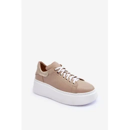 Dámské kožené sportovní boty na platformě Bežové Lemar 10150