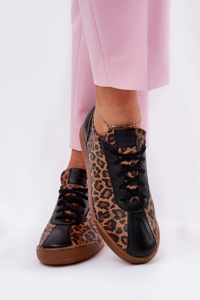 Dámské Kožené Sportovní Boty S Leopardím Vzorem Laura 2935 Hnědé