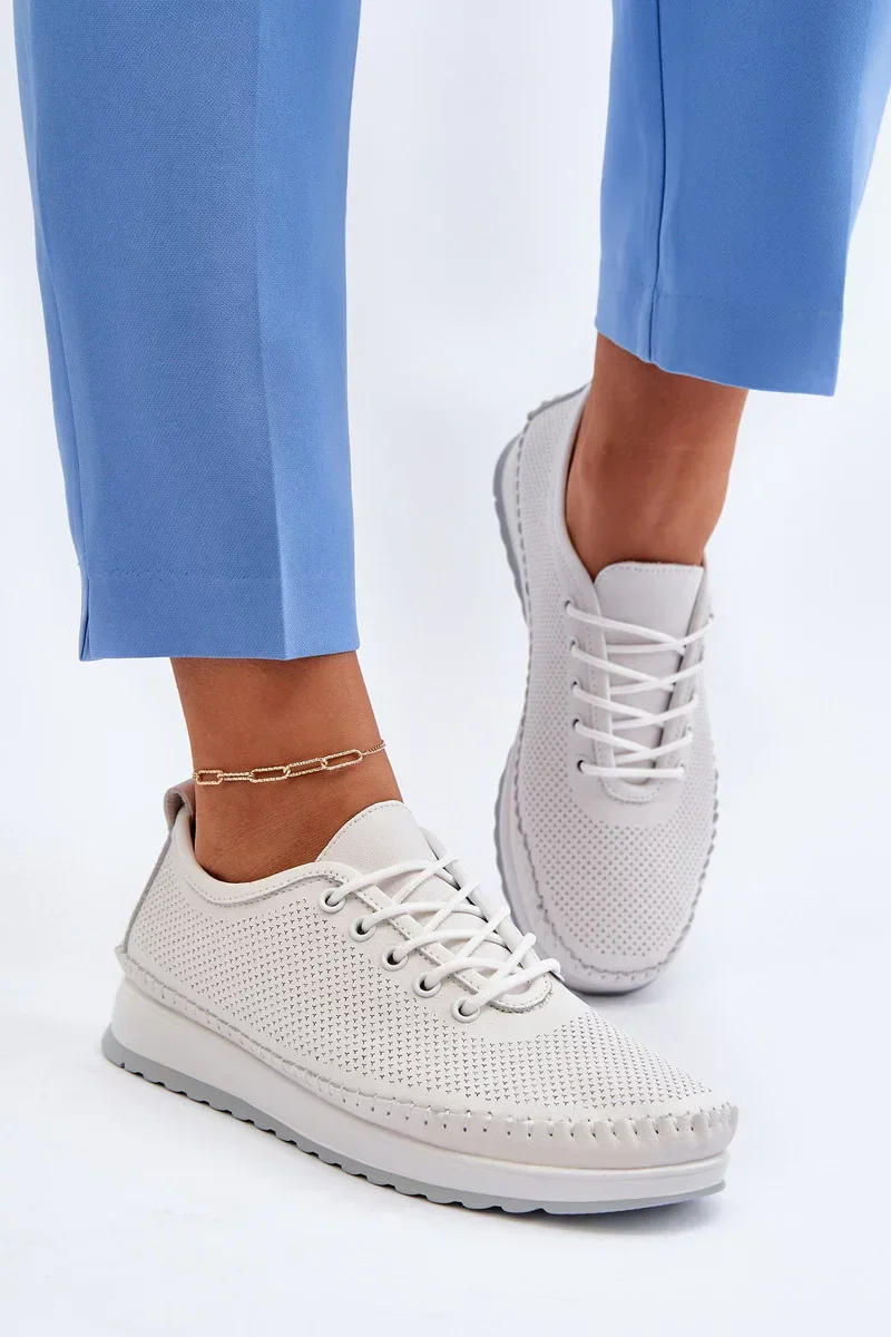 Dámská sportovní obuv je vyrobena z přírodní kůže, která zaručuje vysokou kvalitu a odolnost. Jejich klasický design se šněrováním a zaoblenou špičkou jim dodává univerzální vzhled, který se hodí k mnoha stylům. Jemná platforma dodává lehkost a pohodlí při používání. Stélka vyrobena z kůže. Tento model je základním prvkem vašeho šatníku! Při výběru velikosti se řiďte tabulkou velikostí.