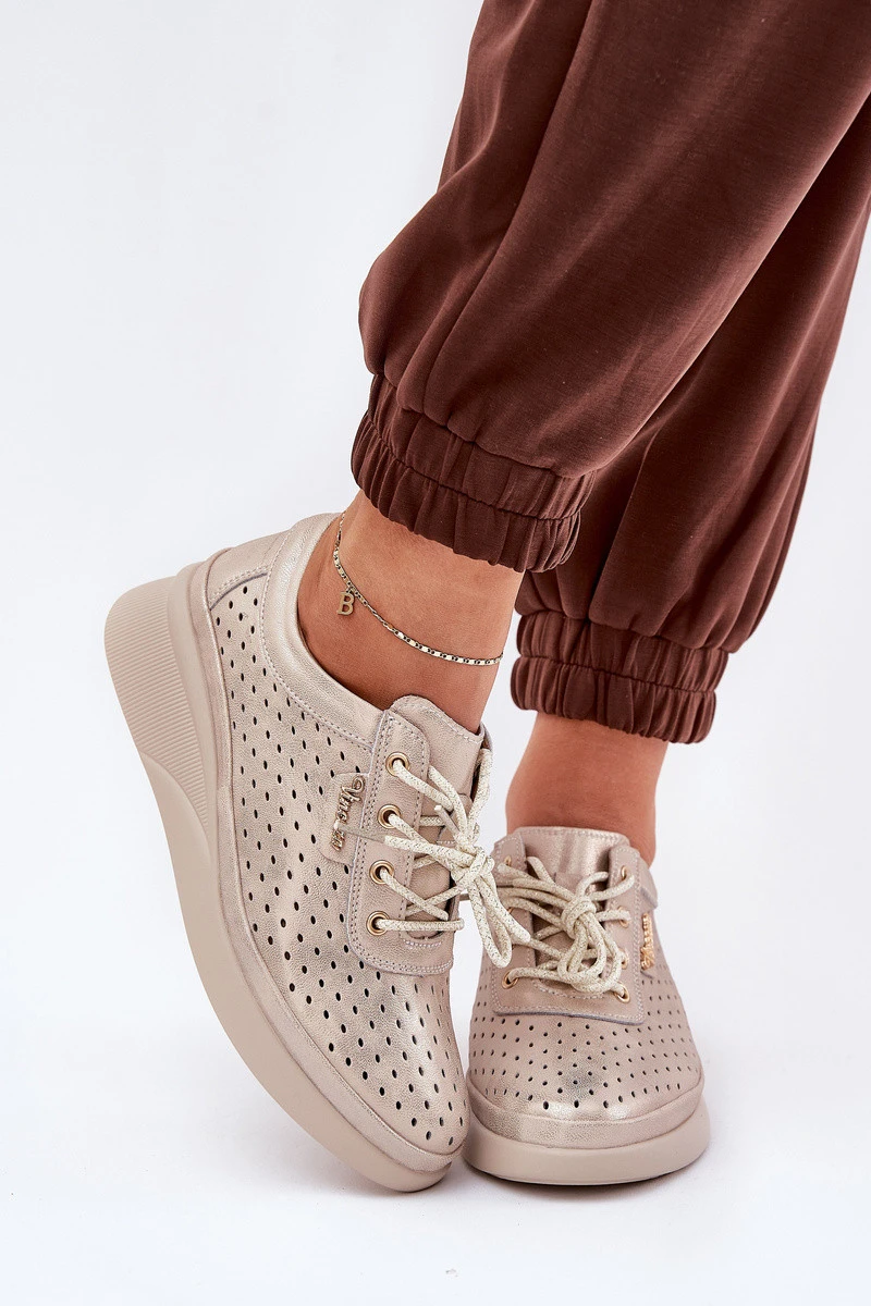 Dámské Kožené Sportovní Tenisky Zlaté Brumia