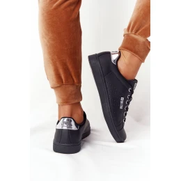 Dámské Kožené Tenisky BIG STAR DD274586 Černé-Stříbrné