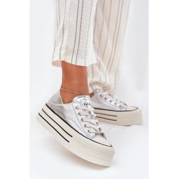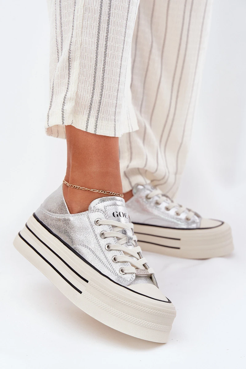 Dámské Kožené Tenisky Na Platformě GOE RR2N4108 Stříbrné