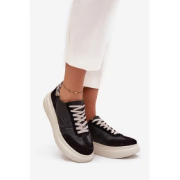 Dámské kožené tenisky na platformě s leopardím vzorem Zazoo – černé