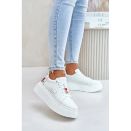 Dámské Kožené Tenisky Na Platformě S Prstenem A Dekorativním Květinou 89100 Bílé