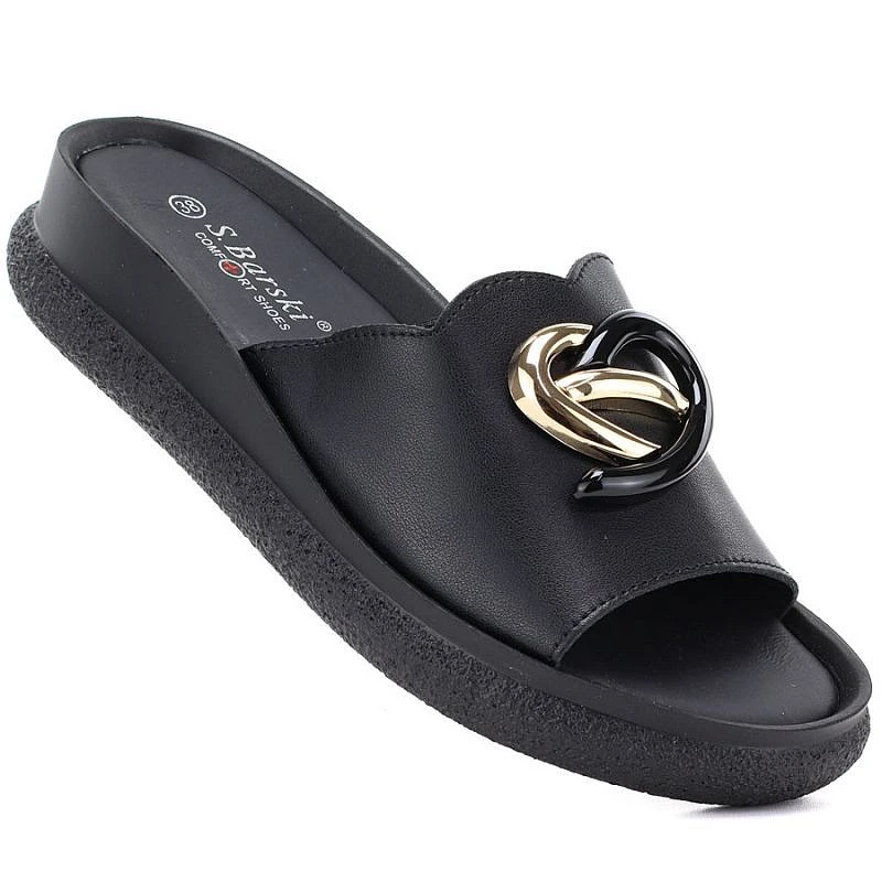Dámské kožené žabky na platformě černé S.Barski KV61-6046