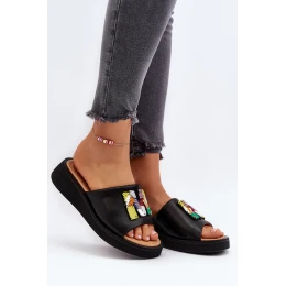 Dámské kožené žabky s ozdobou černé Asames