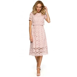 Dámské krajkové midi šaty M405 růžové - Moe