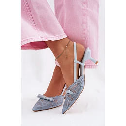 Dámské krajkové sandály na podpatku s mašlí Modré Maribelle