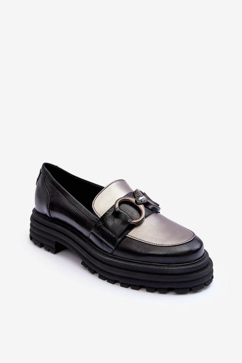 Dámské kůže Loafersy na plochém podpatku černé Elkiza