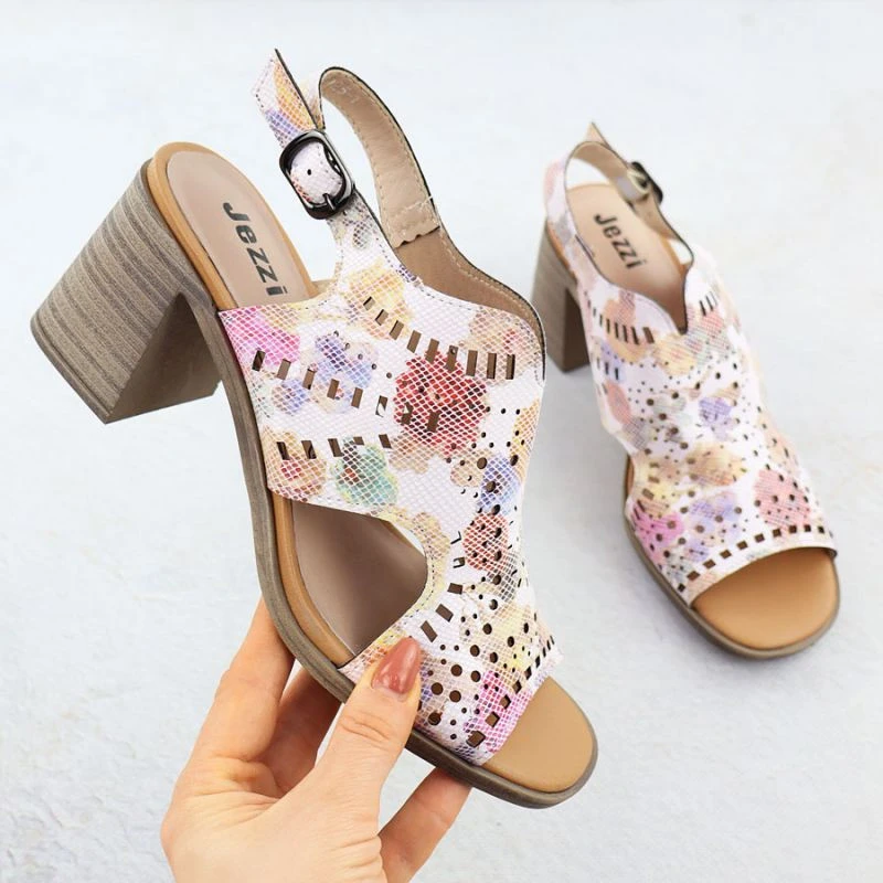Dámské květinové ažurové sandály na podpatku Jezzi 24125