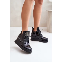 Dámské Lakované Boty Na Klínu Zateplené Vinceza 66706 Černé