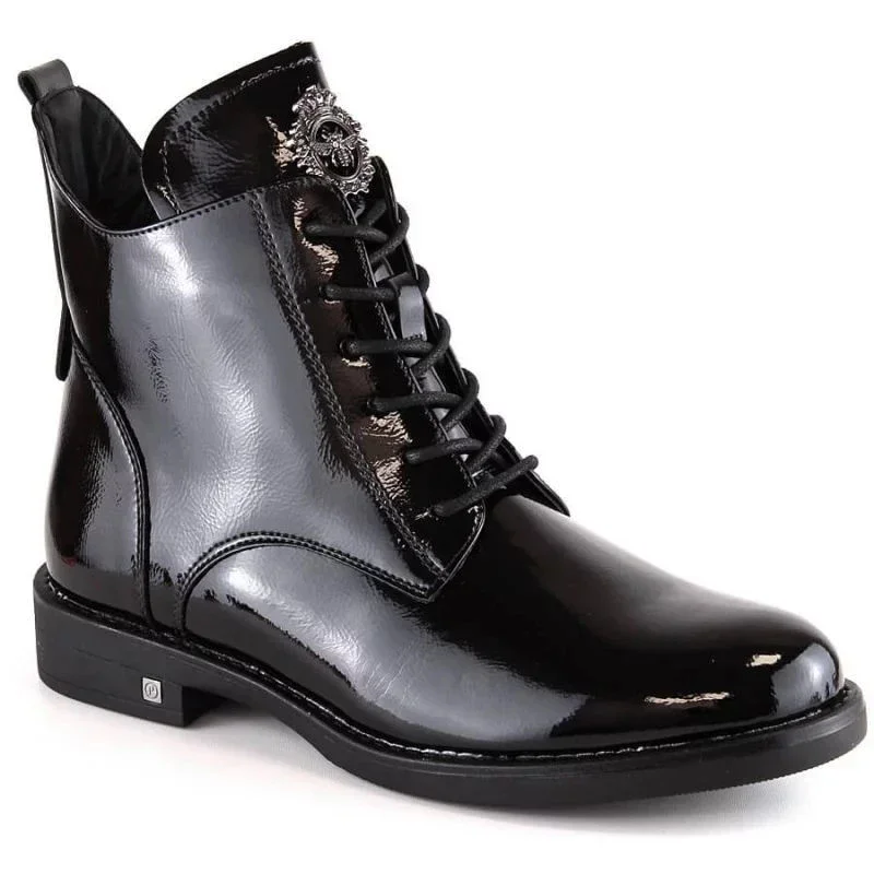 Dámské lakované boty na zip W WOL171A černé - Potocki