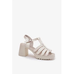 Dámské lakované kožené sandály na sloupku - světle béžové Vinceza