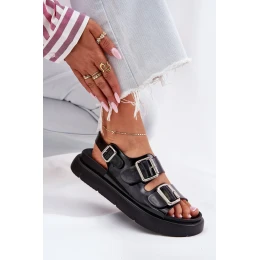 Dámské lakované kožené sandály s přezkami Big Star – černé