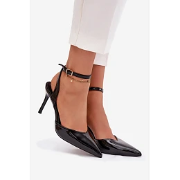 Dámské lodičky vyrobené z lakované eko kůže. Lesklé provedení vypadá na noze krásně a špičaté nosy dodávají celku štíhlost. Model má nastavitelný pásek s přezkou, díky čemuž lze snadno přizpůsobit obuv noze. Ženské, klasické a nadčasové — ideální na večerní stylizace. Při výběru velikosti se řiďte tabulkou velikostí. Při výběru velikosti se řiďte tabulkou velikostí.