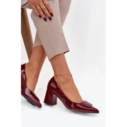 Dámské lakované lodičky na blokovém podpatku s ozdobou Isoline – bordové