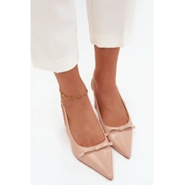 Dámské lakované lodičky na jehlovém podpatku s mašlí Olvena – nude