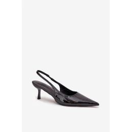 Dámské lakované lodičky na jehlovém podpatku s odkrytou patou Talira – černé