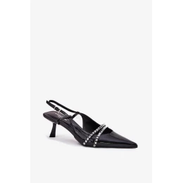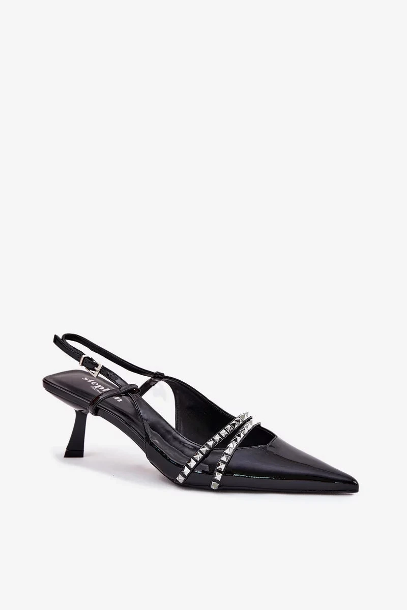 Dámské lakované lodičky na jehlovém podpatku s ozdobnými pásky Jelmia – černé