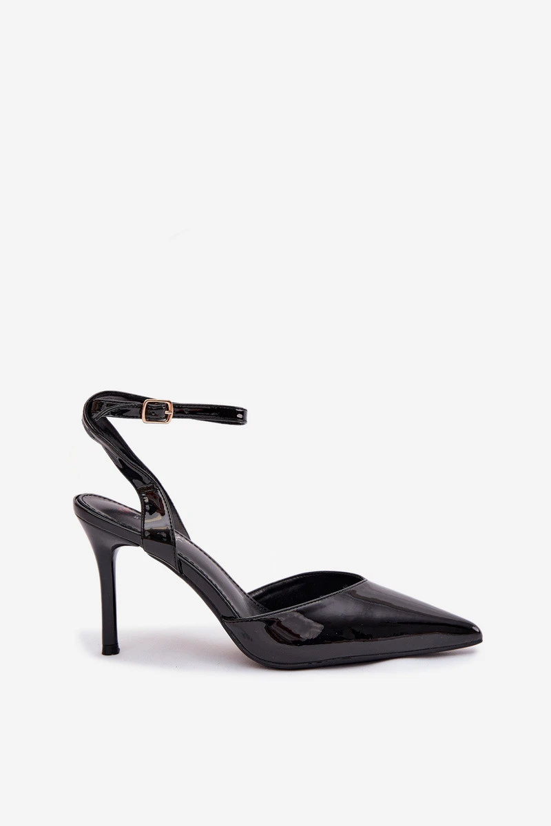 Dámské lakované lodičky s otevřenou patou - černé Laretta