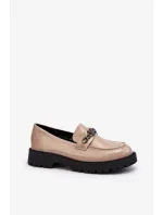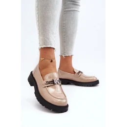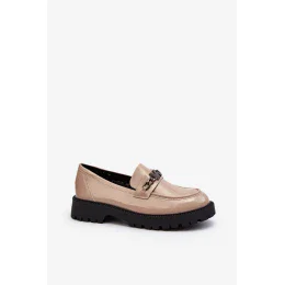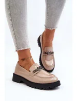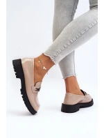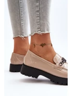 Dámské lakované mokasíny na plochém podpatku, béžová Ezoma