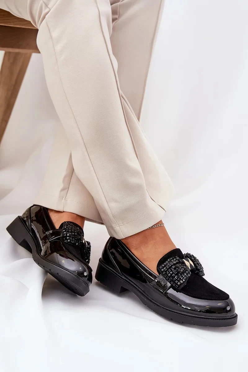 Dámské lakované mokasíny s mašlí S.Barski – černé