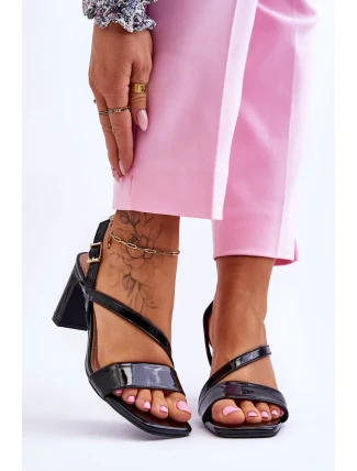 Dámské lakované sandály na podpatku Černá Carrie