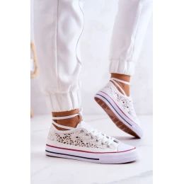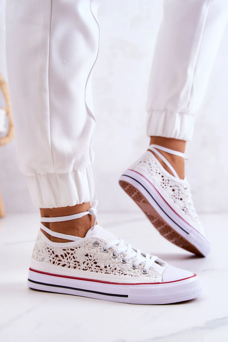 Boty dobře padnou tvaru nohy. Mají měkkou, materiálovou stélku a protiskluzovou podrážku. Jsou vyrobeny z prolamovaného textilního materiálu. Tenisky zavazované na široké ploché tkaničky. Kulatá špička je vyztužena gumovým materiálem. Vzdušný model, ideální na jarní a letní sezónu. Můžete je kombinovat s džínami, vzdušnou sukní nebo šortkami! Pozornost! Gumový vzor na přední straně platformy se může lišit v závislosti na dodávce! Při výběru velikosti se prosím řiďte velikostní tabulkou.