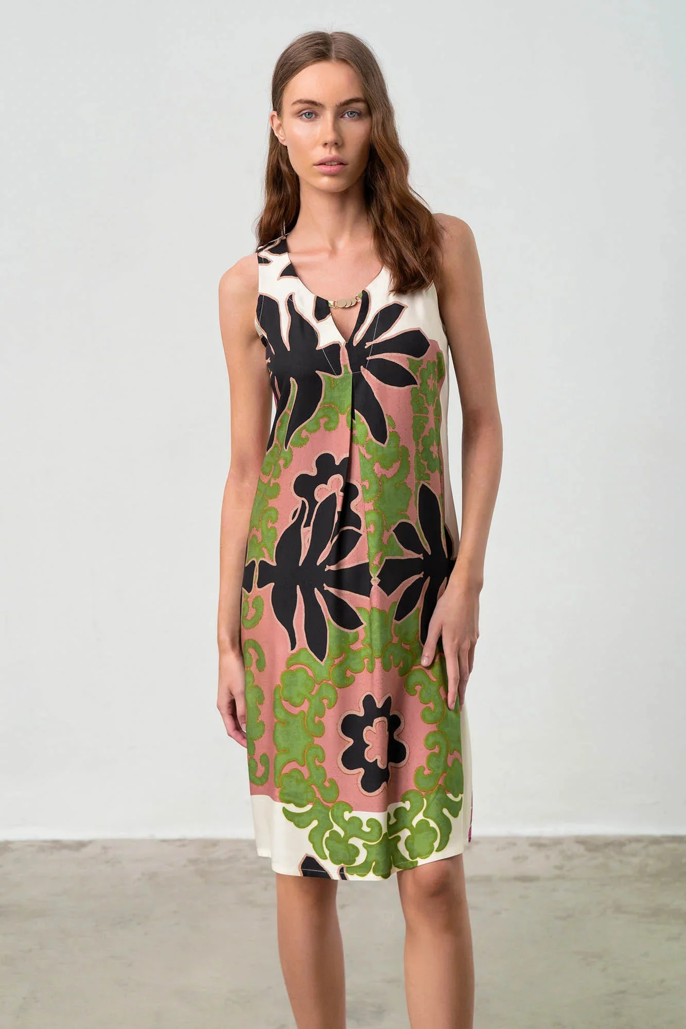 Elegantní a pohodlné letní dámské šaty vyrobené z kvalitního viskózového popelínu. Popelín je odolnou, pevnou, ale zároveň měkkou a na dotek příjemnou tkaninou, která je díky viskóze příjemně chladivá a ideální pro teplé letní období.