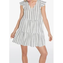 Dámské letní šaty od značky Ysabel Mora. Tyto volné vzdušné šaty jsou ideální volbou do horkého letního počasí. Mají výstřih do V, jemný volánový rukávek a ve spodní části široký volán. Mají světle šedý proužek a působí velmi romanticky.