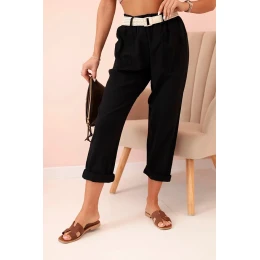 Dámské lněné kalhoty s bavlnou a páskem černé