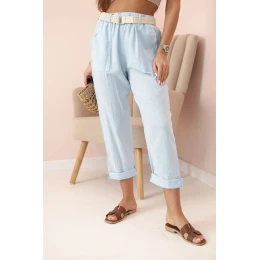 Dámské lněné kalhoty s bavlnou a páskem modré