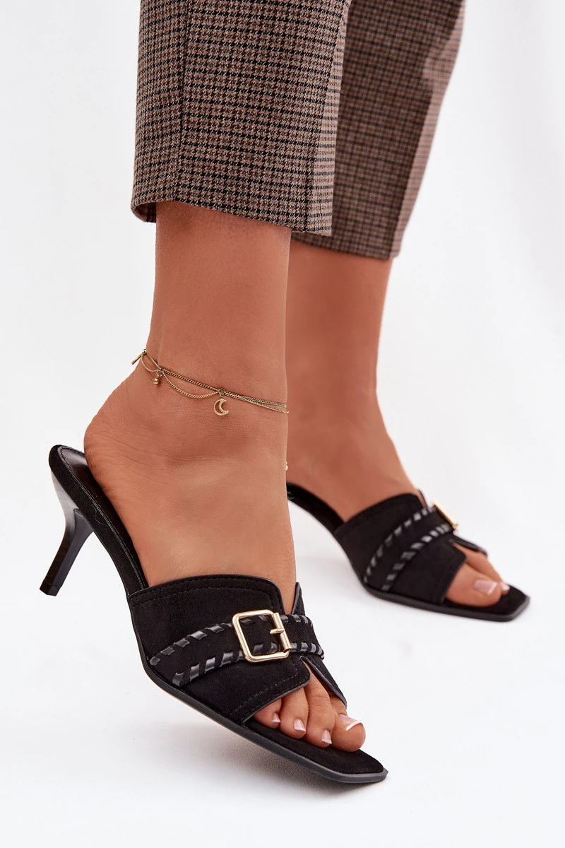 Dámské nazouváky z ekologického semiše jsou elegantní volbou s ženským charakterem. Model na štíhlém podpatku typu jehla jemně zeštíhluje siluetu a dodává lehkost. Přední část zdobí dekorativní pásek se zlatou přezkou, který tvoří stylový akcent a zdůrazňuje výjimečný vzhled obuvi. Při výběru velikosti se řiďte tabulkou velikostí.