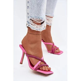 Dámské lodičky na jehlovém podpatku s pásky a kamínky fuchsiové Karima