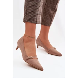 Dámské lodičky na nízkém podpatku s ozdobnou páskou Tmavě béžové Pirela