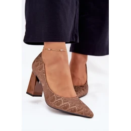 Dámské Lodičky Na Podpatku S Dekorativním Vytlačením Vinceza 62254 Hnědé