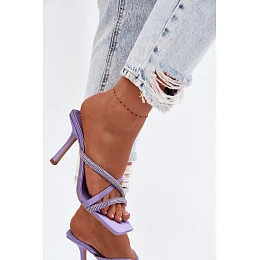 Dámské lodičky na podpatku s pásky a kamínky fialové Karima
