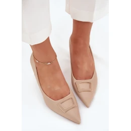 Dámské lodičky na širokém podpatku s ozdobnou sponou Seriva – nude