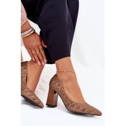 Dámské lodičky na sloupkovém podpatku 62254 Hnědá vzor - VINCEZA