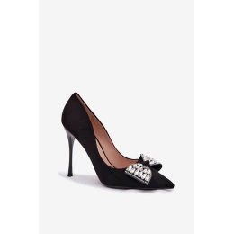 Dámské lodičky s kokardou a krystaly - černé Marivine
