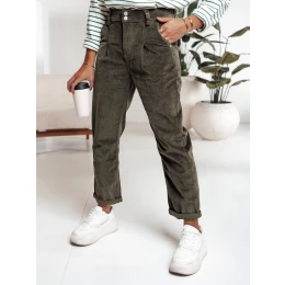 Dámské manšestrové kalhoty tmavě zelené FashionStreet UY2231
