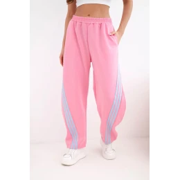 Dámské máslové kalhoty z viskózy s lampasem světle růžové
