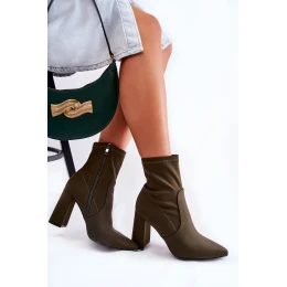 Krásné kozačky s vysokým svrškem ke kotníkům. Tyto boty mají vyztuženou patu. Špičatá špička. Zapínání na zip na boční straně svršku. Pohodlná stélka je vyrobena z eko kůže. Jsou osazeny na masivním podpatku v podobě sloupku. Jsou ideální pro elegantní i klasické stylizace. Určitě se podívejte i na další modely bot! Při výběru velikosti použijte tabulku velikostí.