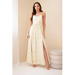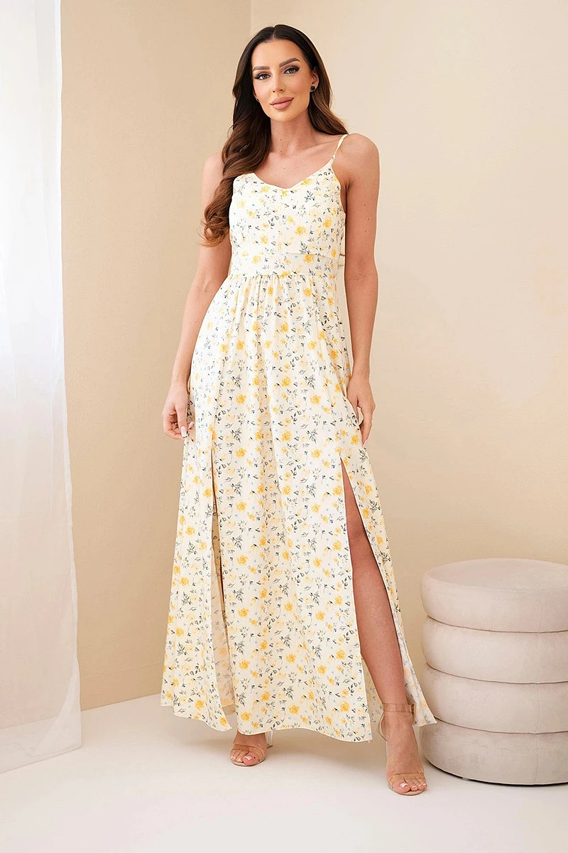 Dámské maxi šaty s květinovým vzorem na ramínkách se zavazováním na zádech žlutá
