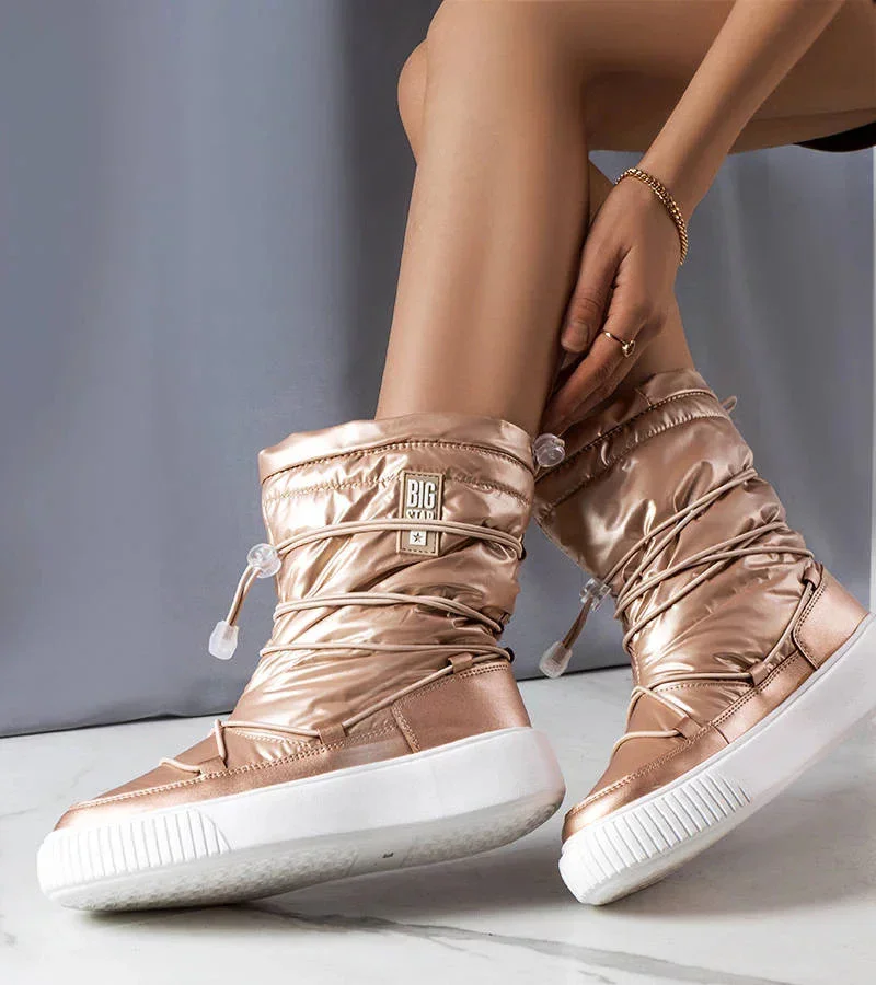 Dámské metalické INT1783B zateplené sněhule Béžová - Big Star