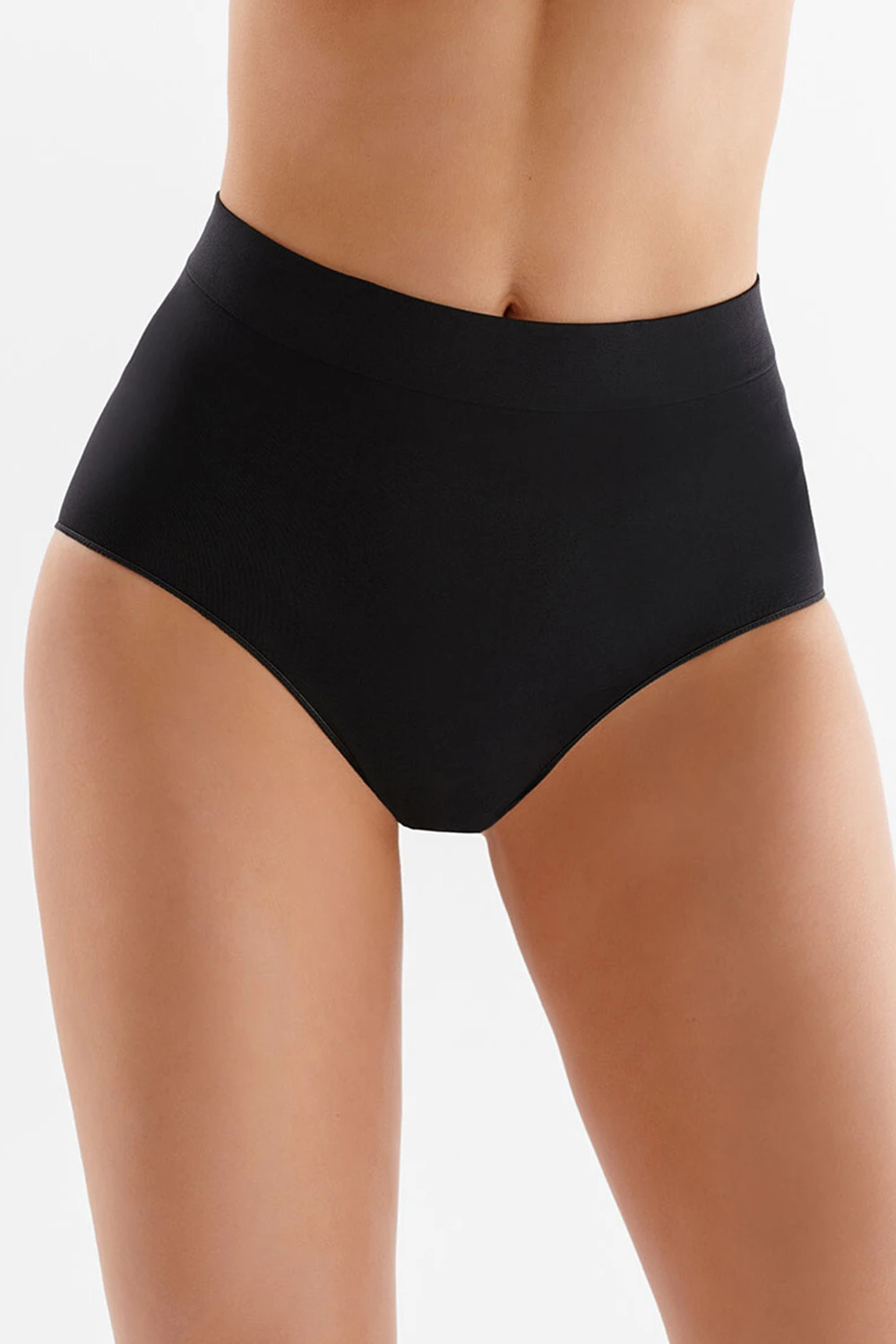 Bezešvé kalhotky s vysokým pasem jsou bestsellerem mezi spodním prádlem pro každodenní nošení. Nevyčnívají pod oblečením, netlačí na tělo, dokonale se přizpůsobují ženským křivkám, jsou příjemné na dotek a poskytují zeštíhlující efekt na břiše. Jsou zakončené širokou elastickou gumičkou, která netlačí a zajišťuje pohodlné nošení. Inovativní antibakteriální klín zajišťuje hygienické používání.