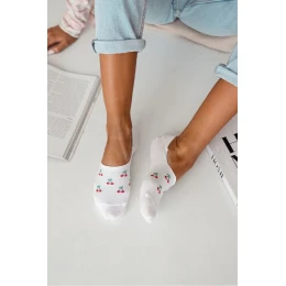 Dámské mikro-kotníkové bavlněné ponožky Malé višně – bílé