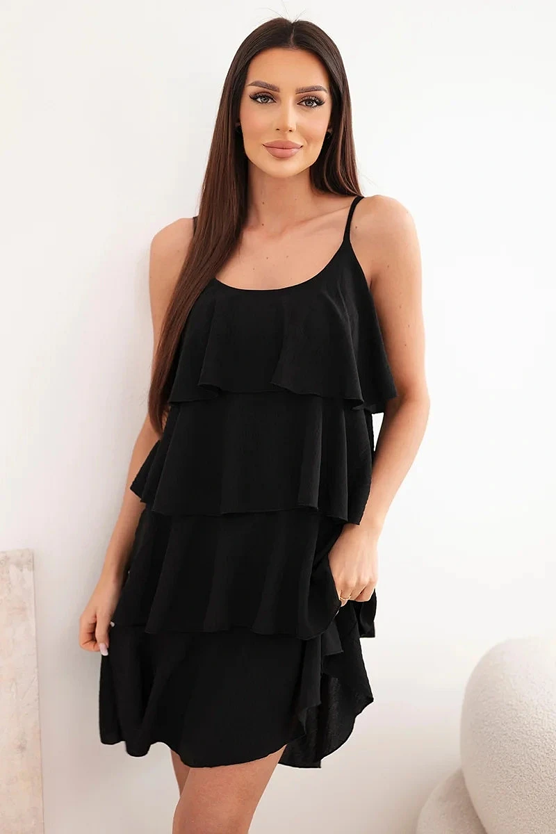 Dámské mini šaty na ramínkách s volány černá