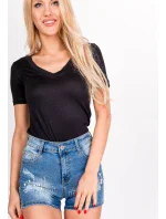 Černé dámské tričko T-shirt basic s výstřihem vzadu Feel Good (4662-22)