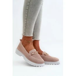 Dámské Mokasíny Na Ploché Podrážce S Zlatým Detailom Růžové Limentia